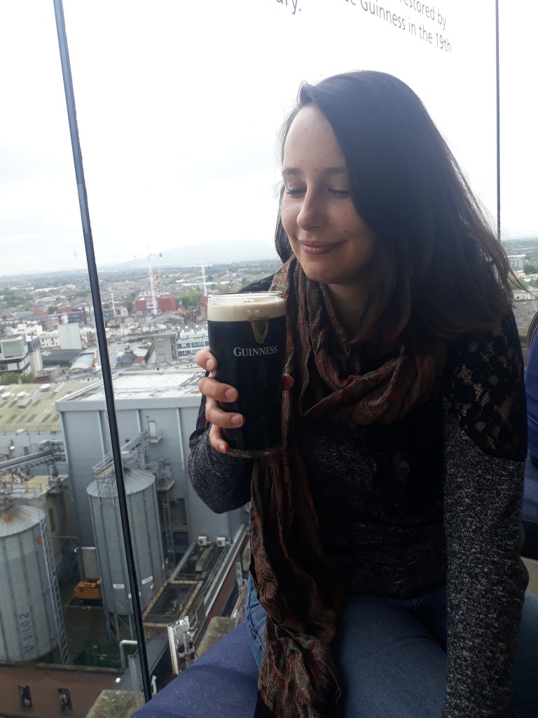 Als wir am Ende unserer Reise unseren letzten Tag in Dublin verbrachten, haben wir uns (auf dringende Empfehlung) noch das Guinness Storehouse angesehen, die beliebteste Touristenattraktion Irlands. Ich finde den Preis von mindestens 18€ recht deftig, man bekommt aber auch sieben Etagen Ausstellung rund um das Thema Guinness und seine Geschichte geboten und in der 8. Etage in der „Gravity Bar“ über den Dächern Dublins ein gratis Guinness. Und das eine Bier hat total geknallt, so dass wir ziemlich angetrunken von dort zum Flughafen gefahren und wehmütig zurück nach Berlin geflogen sind.